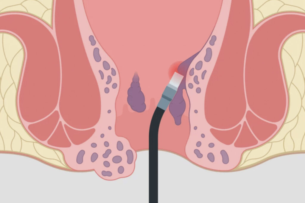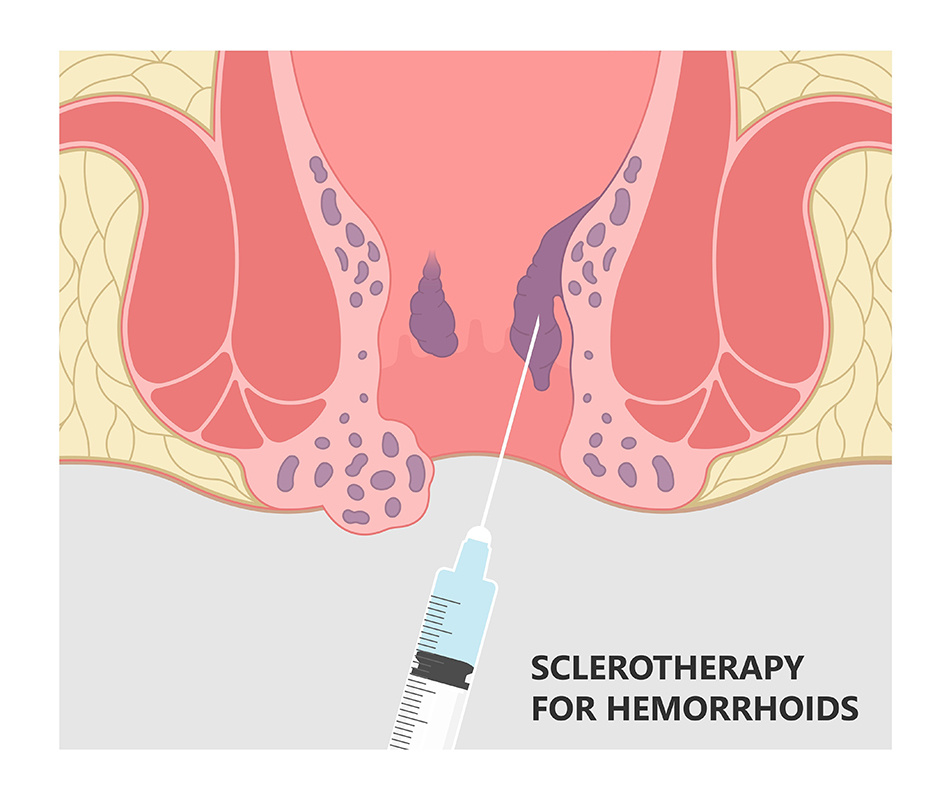 Sclerotherapy is a minimally invasive treatment where a special solution is injected into the haemorrhoid, causing it to shrink over time. By reducing blood flow to the affected area, it helps relieve symptoms such as bleeding and discomfort without the need for surgery or prolonged downtime.